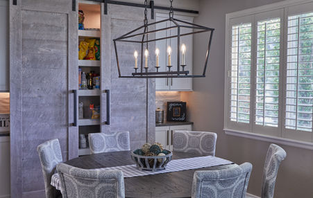 This renovation included removing walls between the kitchen and formal dining room, adding french sliding doors in the great room, and giving facelifts to the bathrooms, staircase, and laundry room. All the doors and trim were retrofitted with a modern farmhouse flair.